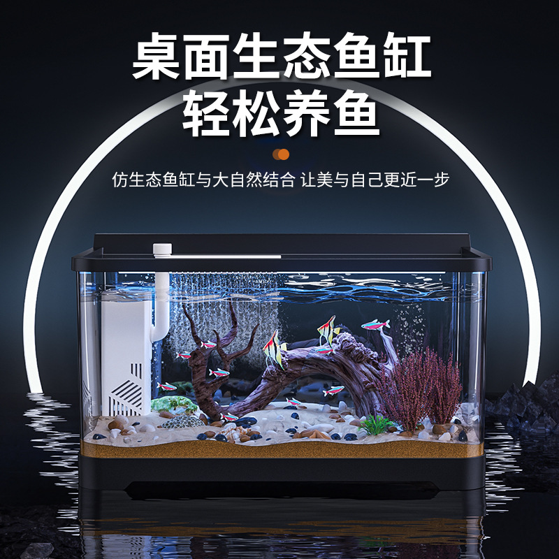 水槽金晶超白ガラス家庭用デスクトップリビングオフィスのバックフィルター生態無水自動循環水槽