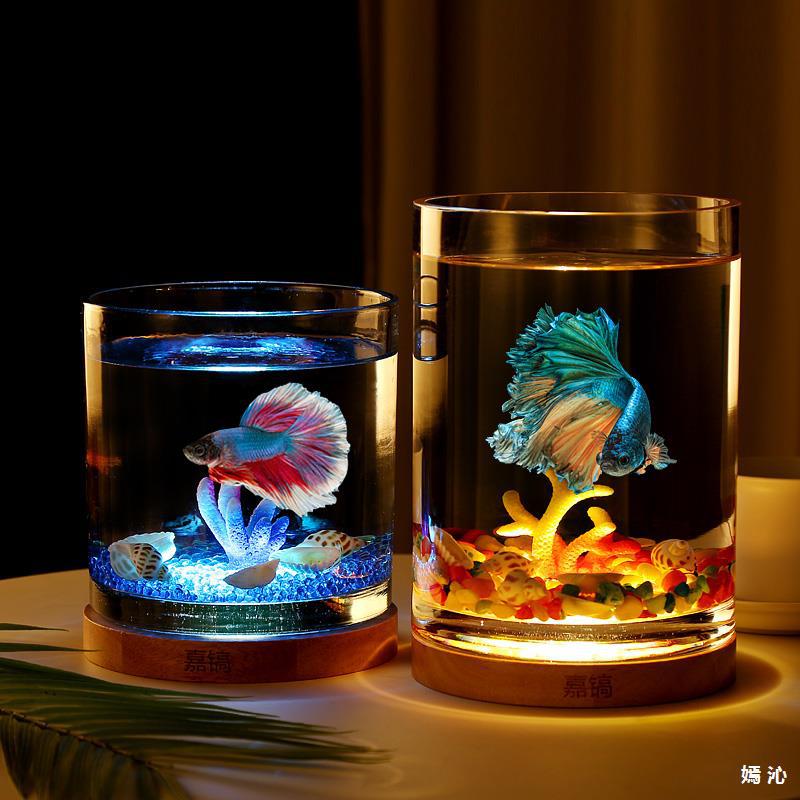 在庫一掃特価デスクトップ小型リビングルーム家庭創意水槽生態シリンダー一体式フィルタ付き循環ランプ