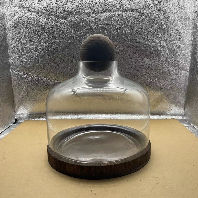 創意円形ガラス水槽小水槽日本式小口生態瓶闘魚瓶デスクトップ微景観木ベース
