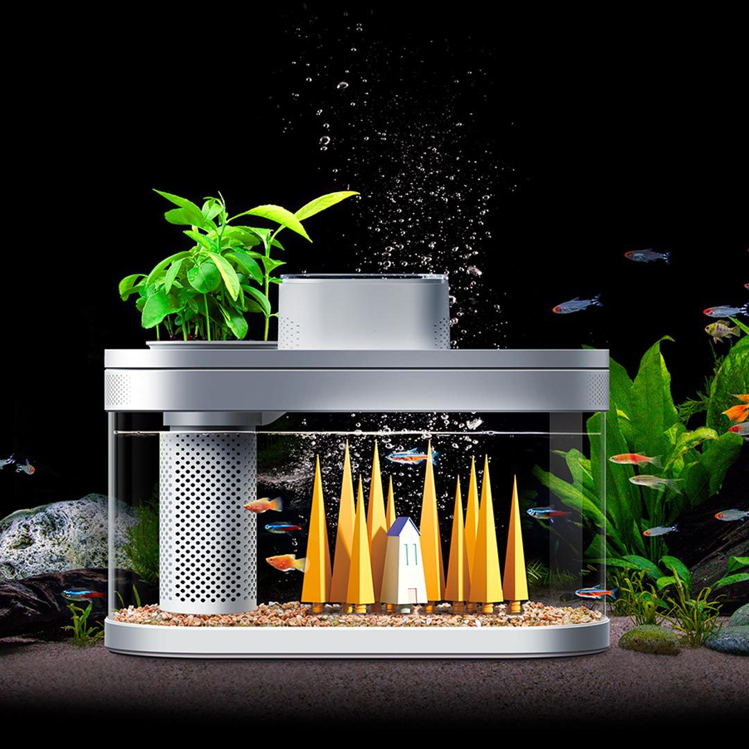 絵法幾何学両生類生態怠け者水槽知能版客間小型デスクトップ創造米スピーカー水槽