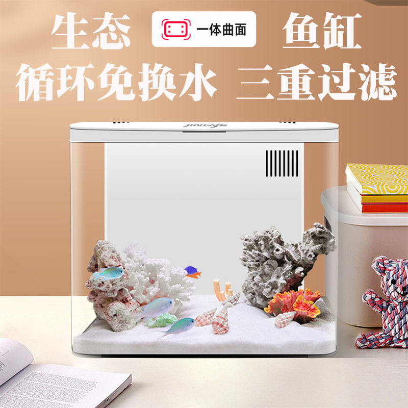 水槽金晶超白ガラス家庭用デスクトップリビングオフィスのバックフィルター生態無水自動循環水槽