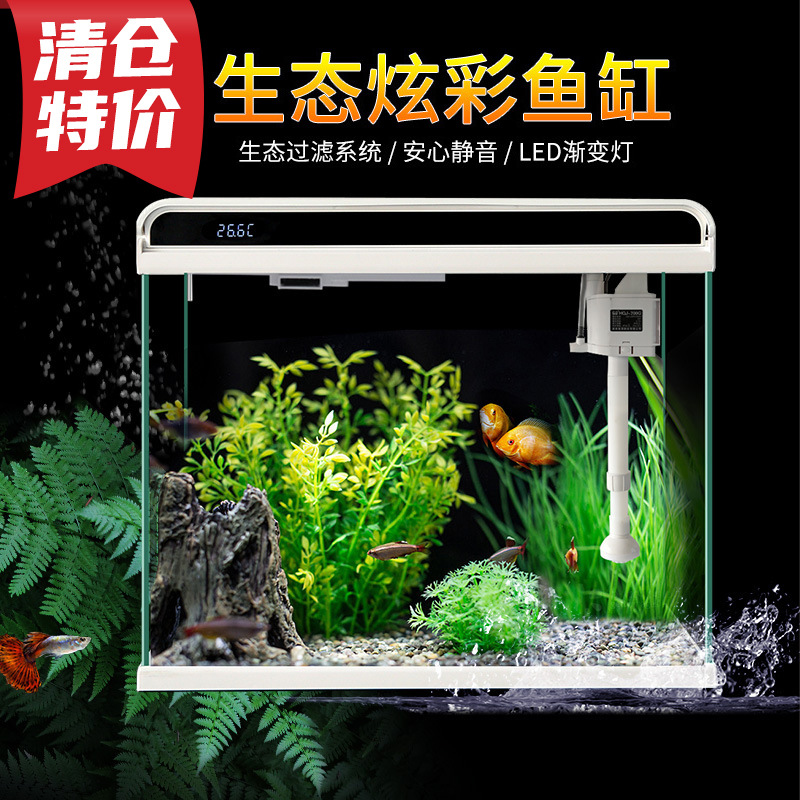 ニーポル水槽小型超白ガラス水槽生態デスクトップ客間自循環側ろ過金魚鉢造景
