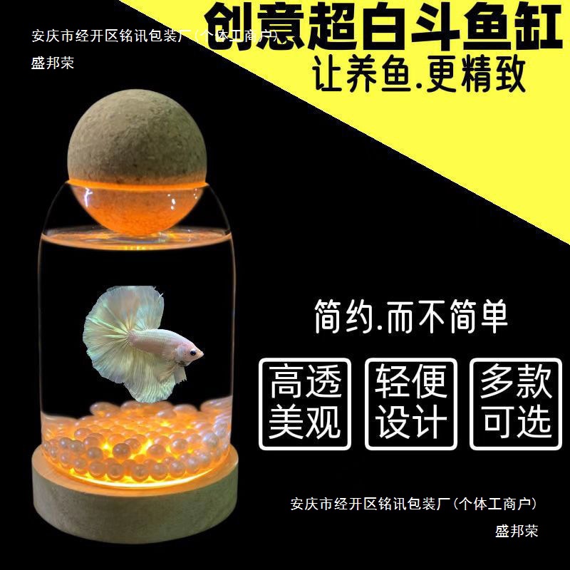 闘魚専用シリンダー高透小型怠け者造景ガラスデスクトップ専用水槽寮小夜灯ネット赤プレゼント