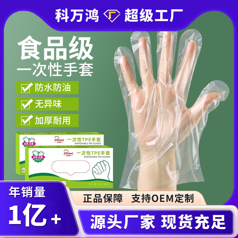 使い捨て手袋食品級厚手焙煎家庭用キッチン飲食tpeフィルム手袋100個セット卸売り