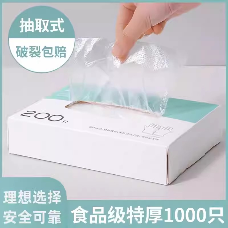 使い捨て手袋ケース食品級抽出式厚手透明プラスチック手袋家庭用商用pe手袋卸売り
