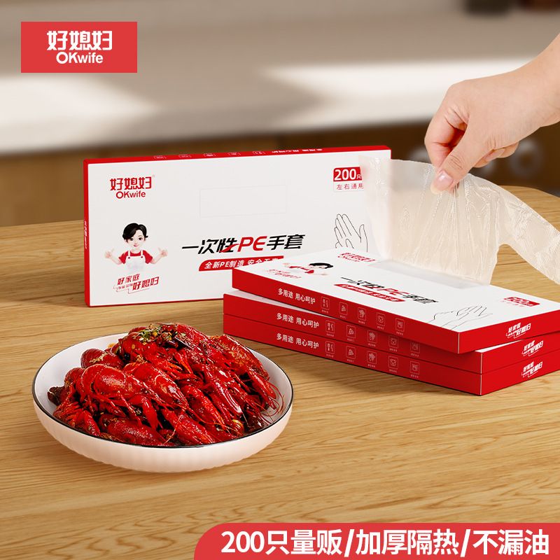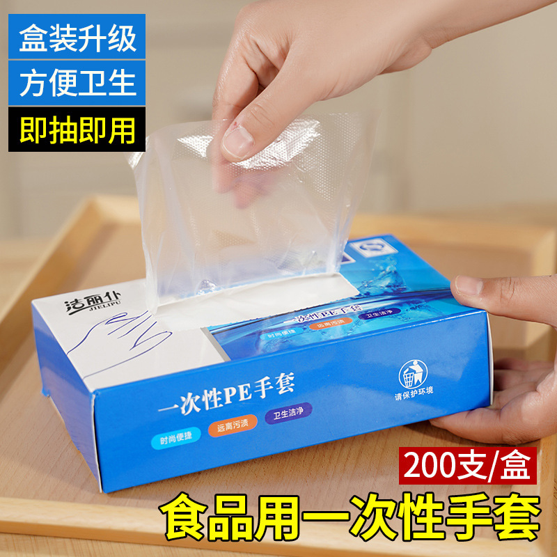 良い嫁の使い捨て手袋200本のケース食品級の厚いpe抽出式手袋キッチン家庭用手袋