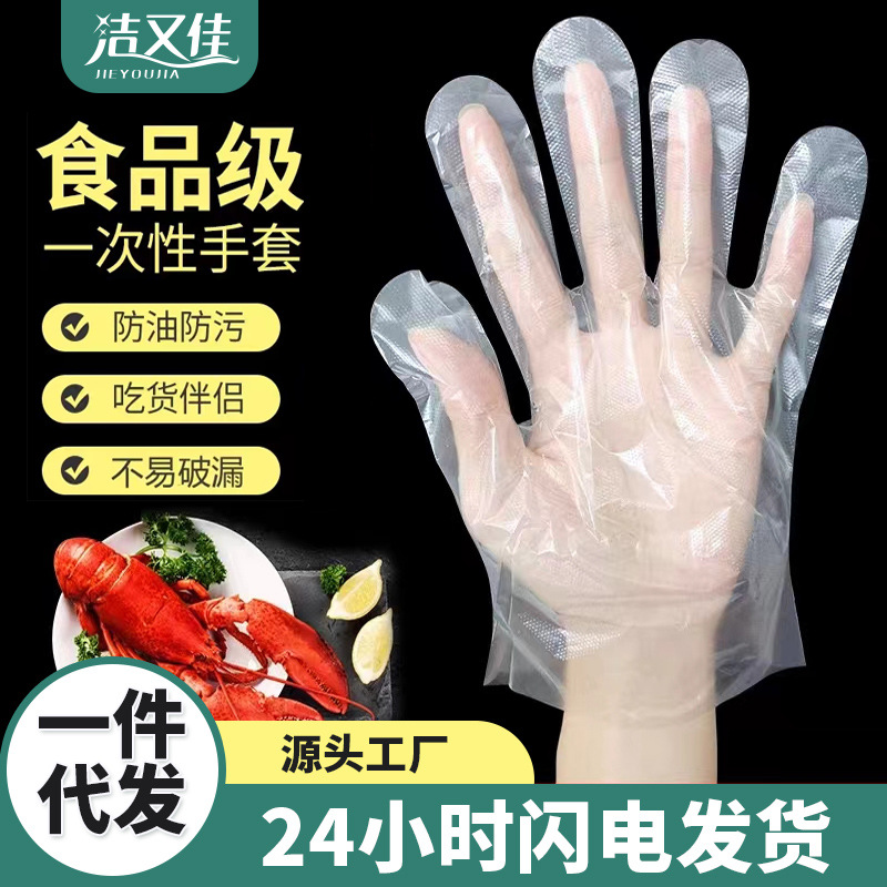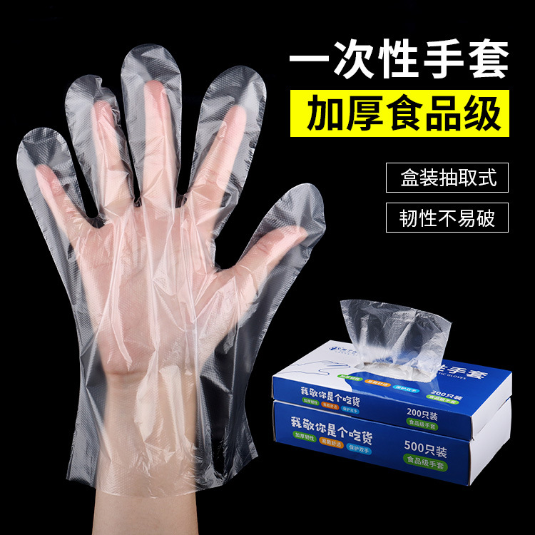 使い捨て手袋食品級専用飲食美容業務用理髪店手膜カバーpeキッチン用厚手卸売り