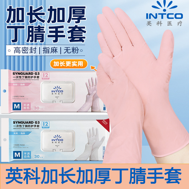 英科の使い捨てニトリルの手袋は食品の専用の台所の飲食の食器洗いを厚くしてピンクの丁晴の家事のゴムを焼きます。
