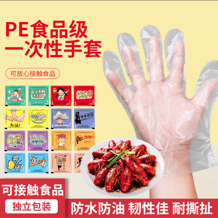 卸売り使い捨て手袋100匹家庭用商用PEプラスチックフィルム手袋ロブスター飲食販売手袋