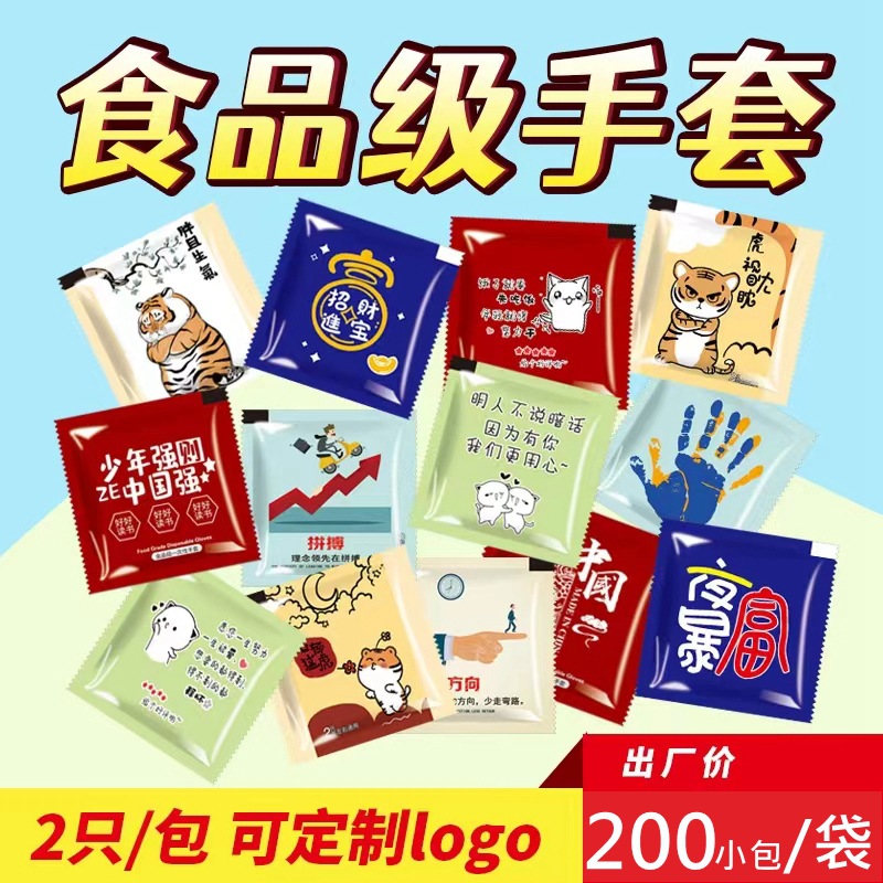 使い捨て手袋独立小包装食品級飲食透明創意厚いロブスターフライドチキン印LOGO卸売り