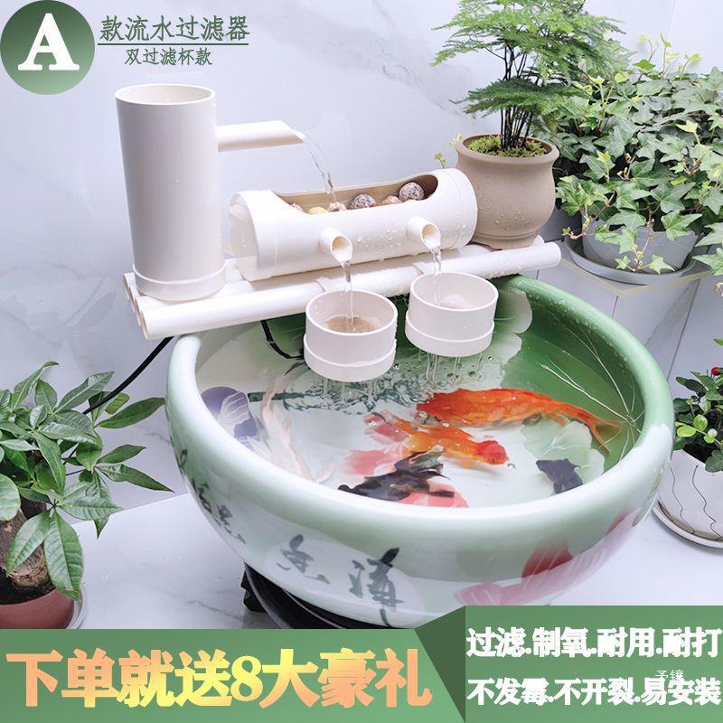 A型水槽水循環流水フィルタ置物陶磁器瓦シリンダー石槽円形養魚亀増酸素ポンプ
