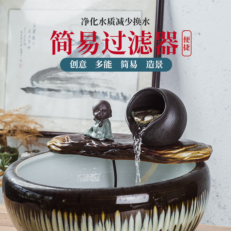 水槽フィルター養魚池浄水家庭用循環システム三合一換水小型円形磁器シリンダー滝