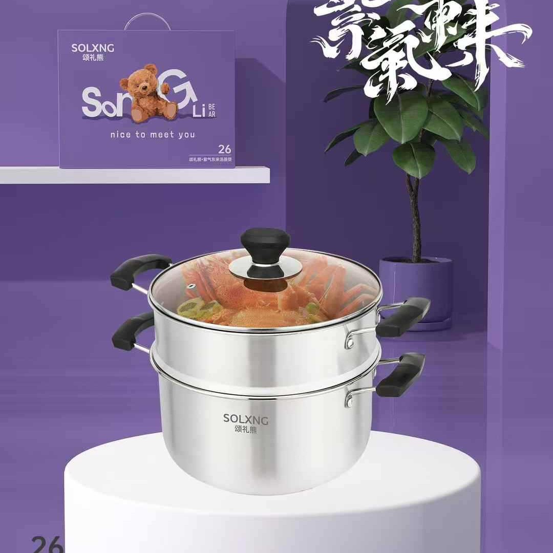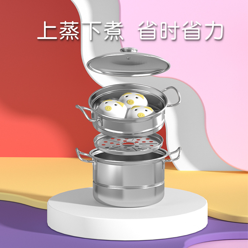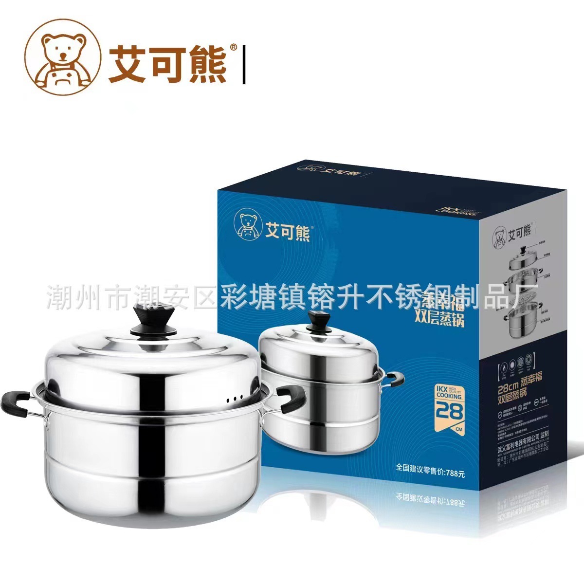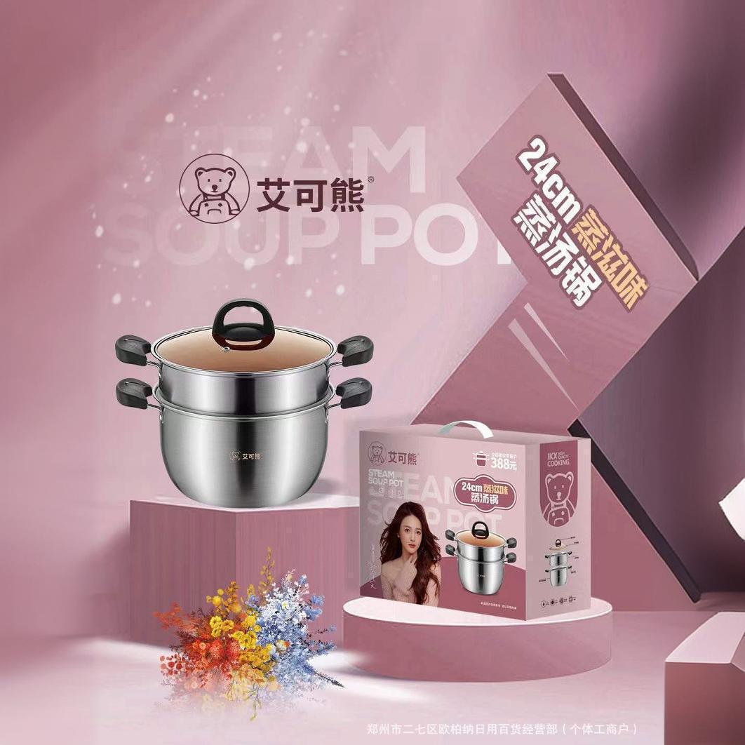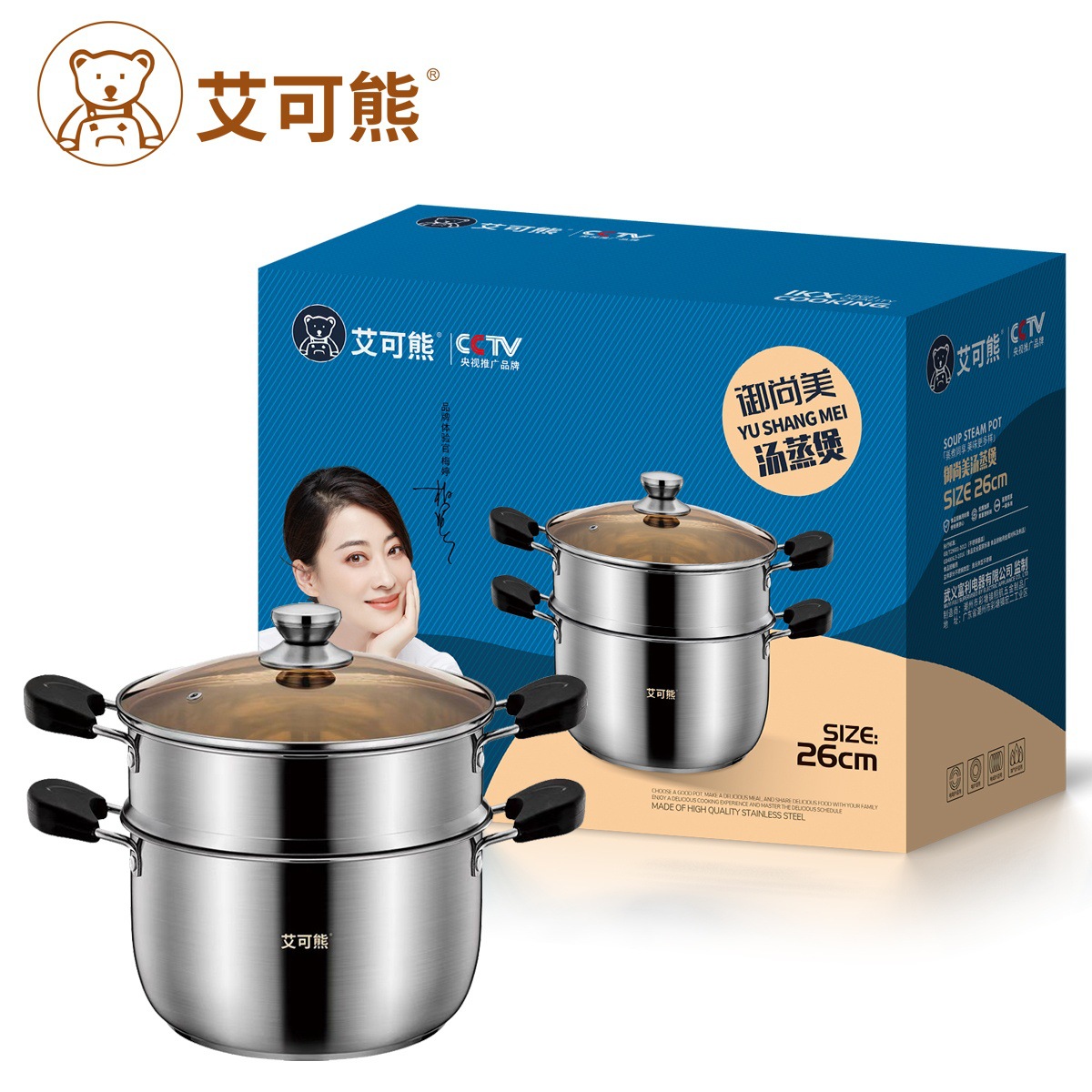 艾可熊蒸覇ステンレススープ蒸し鍋二重蒸し鍋家庭用スープ蒸し鍋活動プレゼント鍋具電磁炉鍋