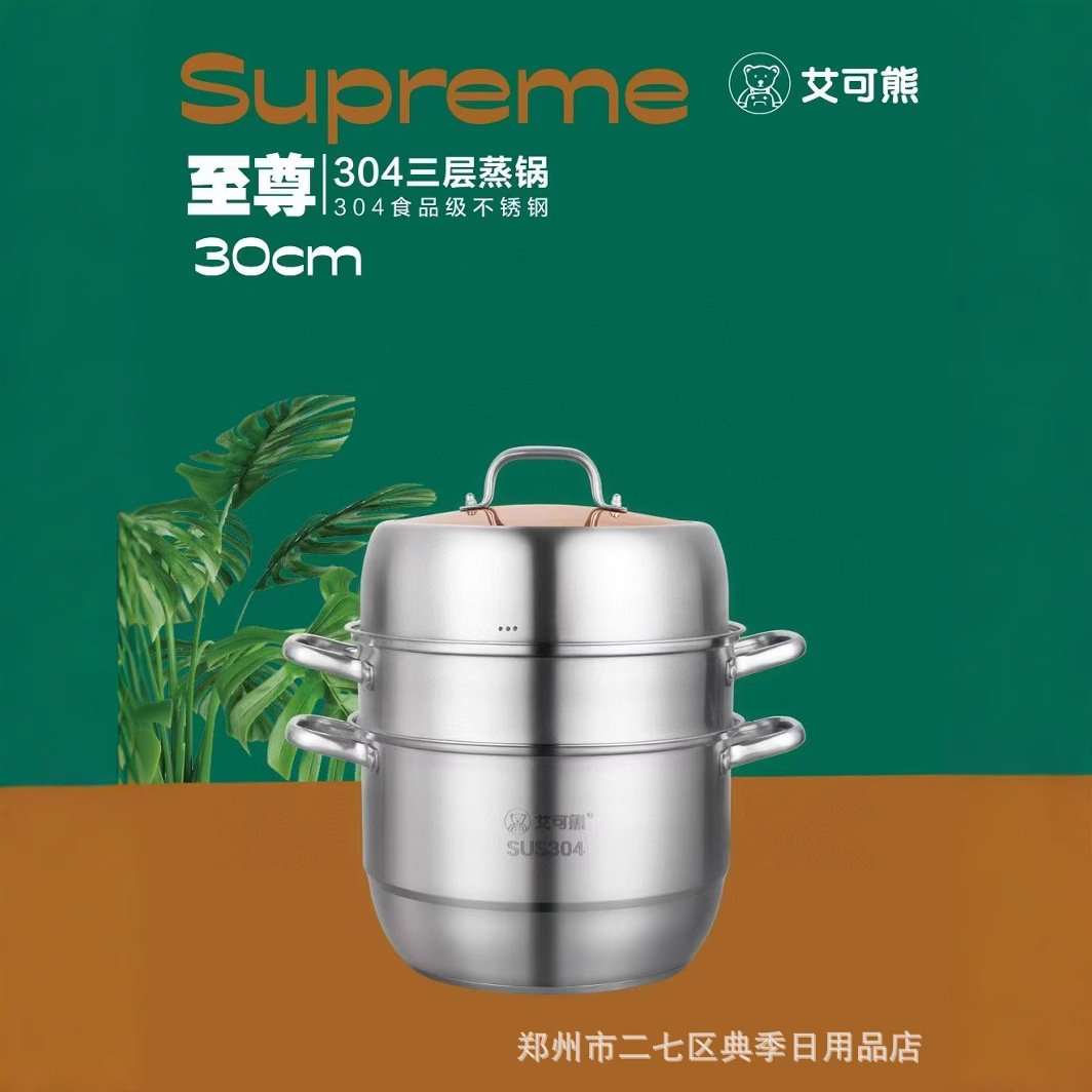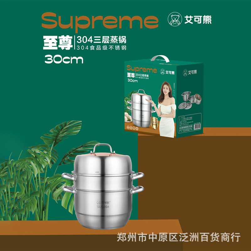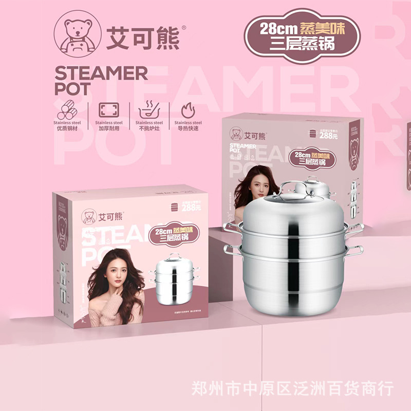 艾可熊SUS304厚いステンレススープ蒸し器多機能三層蒸し鍋プレゼント卸売り
