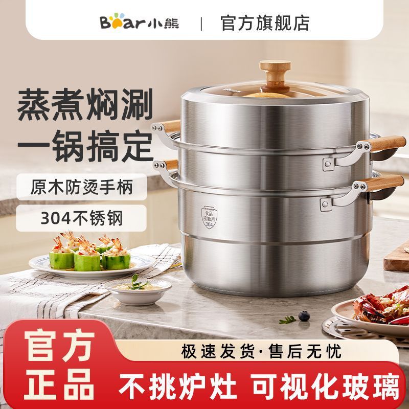 熊蒸し鍋家庭用蒸煮煮込み一体蒸し魚饅頭304ステンレス多層電磁炉ガスレンジ通用