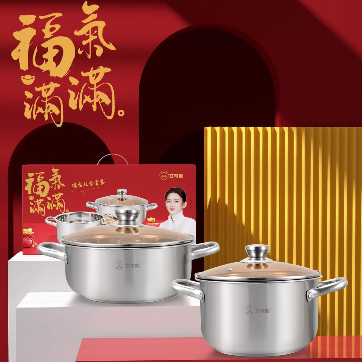 艾可熊ステンレス福気満鍋セット家庭用キッチン複合多機能スープ鍋ミルク鍋蒸し鍋