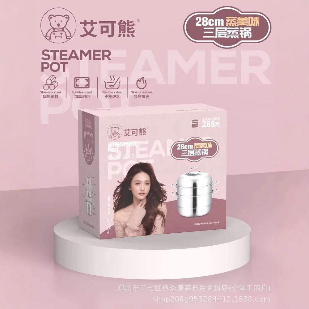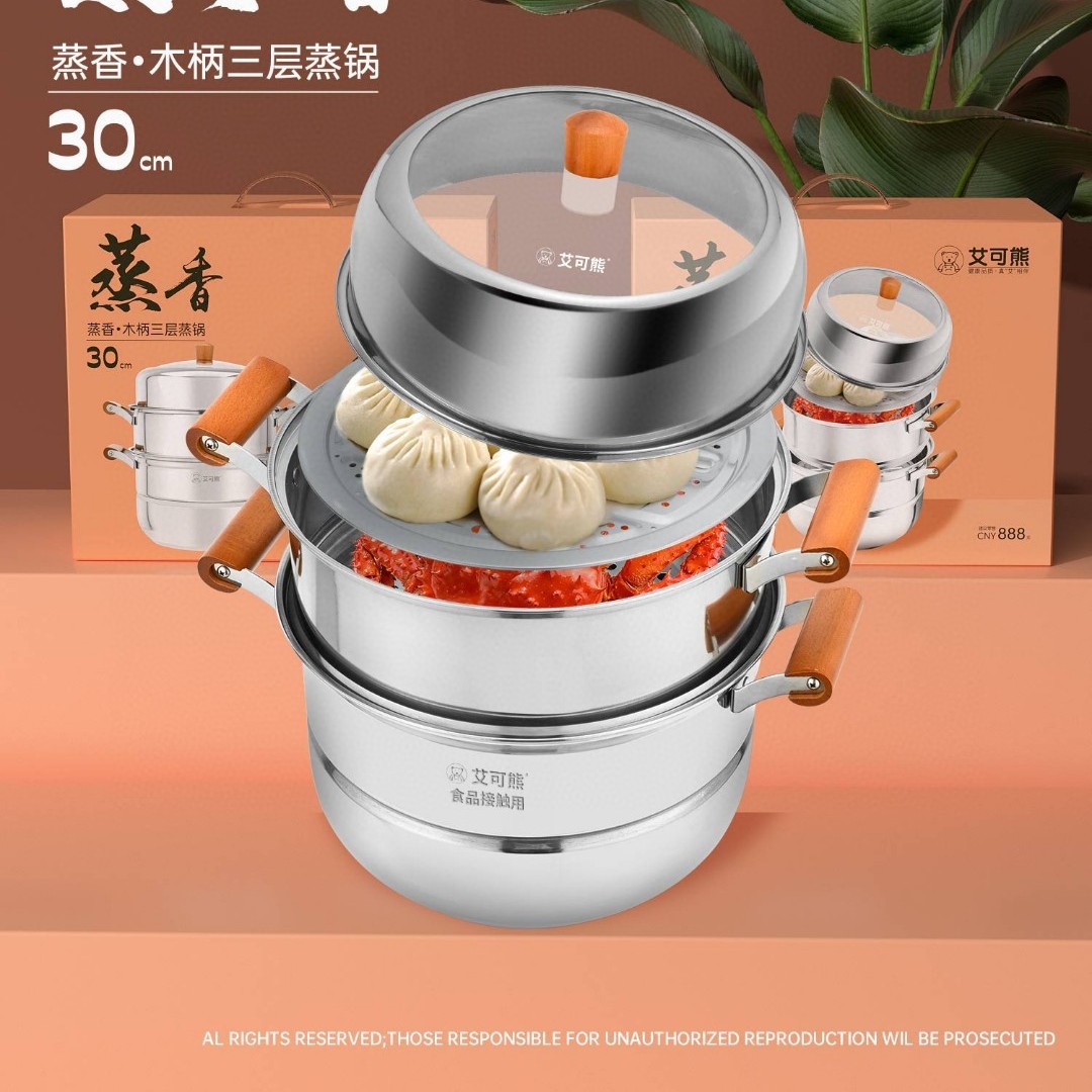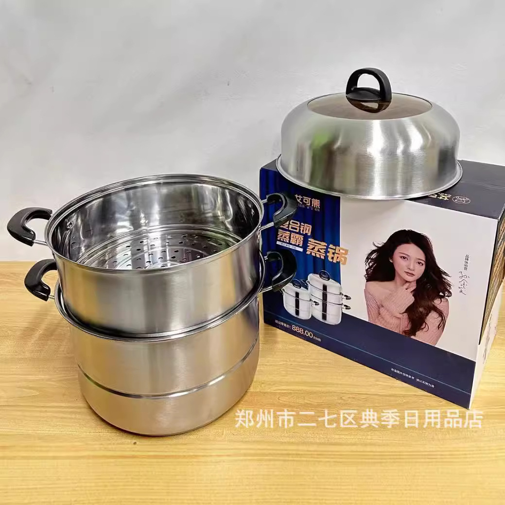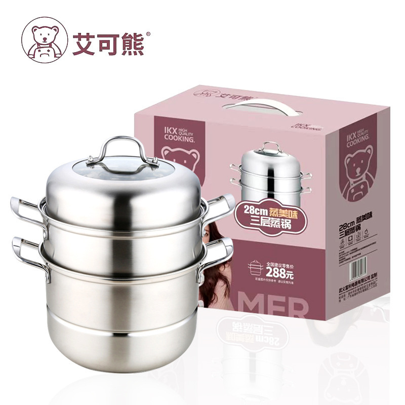 艾可熊ステンレス多層蒸し鍋家庭用三層スープ蒸し鍋活動プレゼント鍋具電磁炉ガス共通