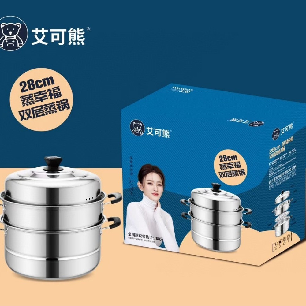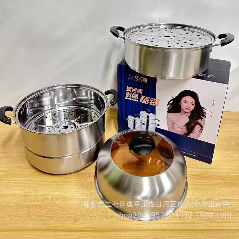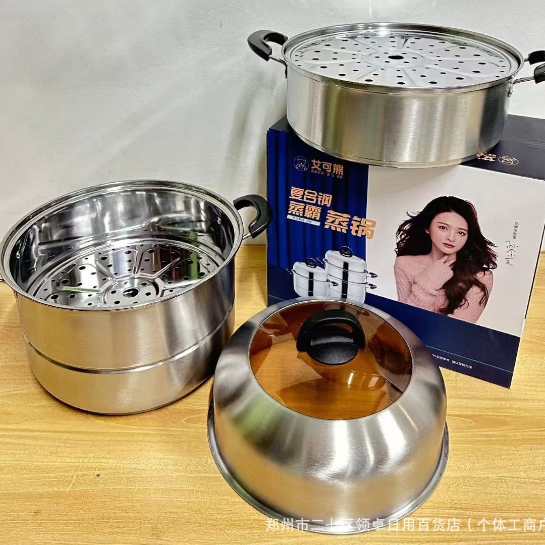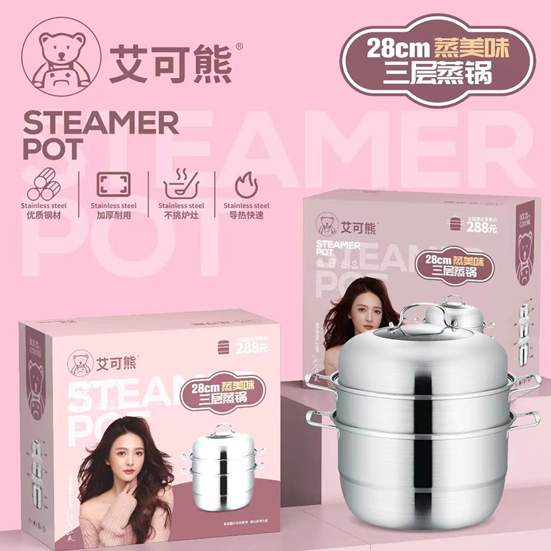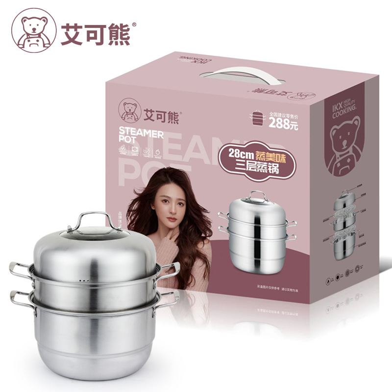 艾可熊ステンレス多層蒸し鍋家庭用三層スープ蒸し鍋活動プレゼント鍋具電磁炉ガス共通