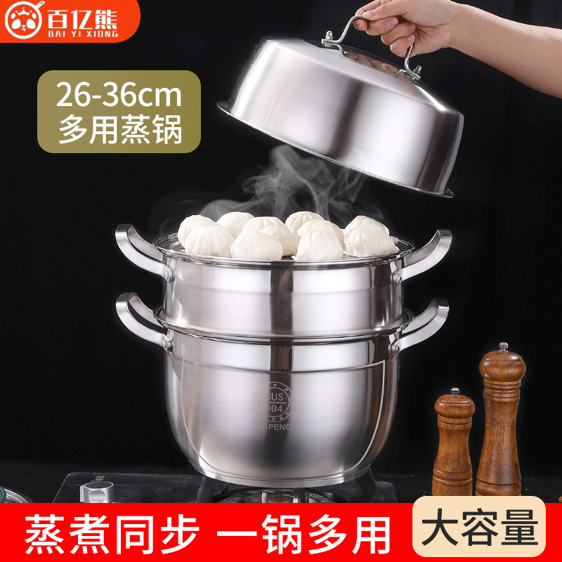 百億熊304ステンレス蒸し鍋三層大容量家庭用蒸し器蒸し器蒸し器鍋スープ鍋