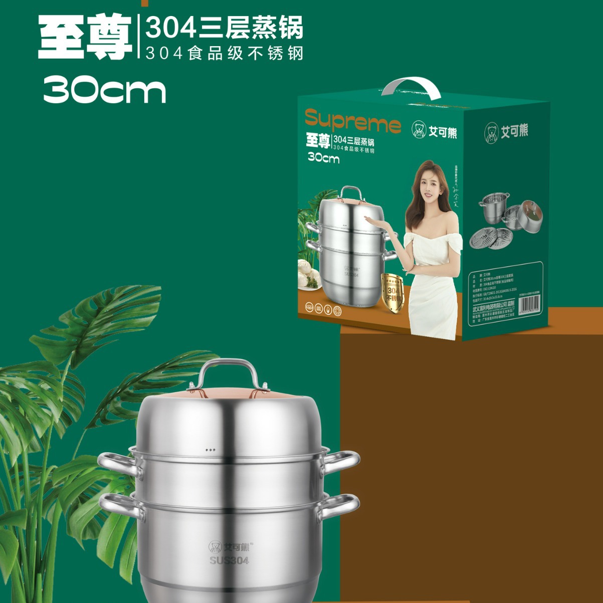 艾可熊30蒸覇三層復底蒸鍋家庭用多機能蒸鍋銀行販売部プレゼント卸売り