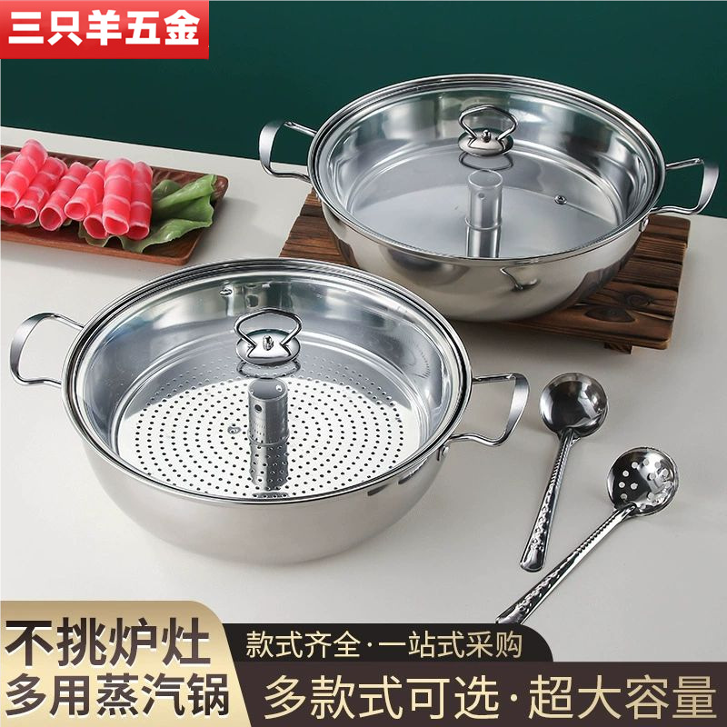 ステンレス蒸し鍋単層スープ鍋二層三層スープ蒸し鍋家庭用火鍋具厚めプレゼント28cm30cm