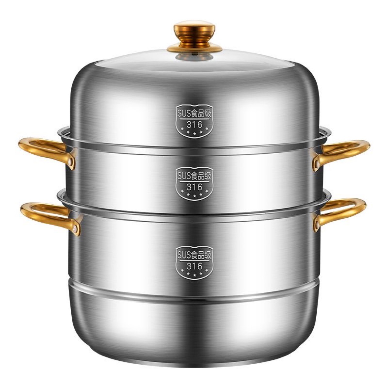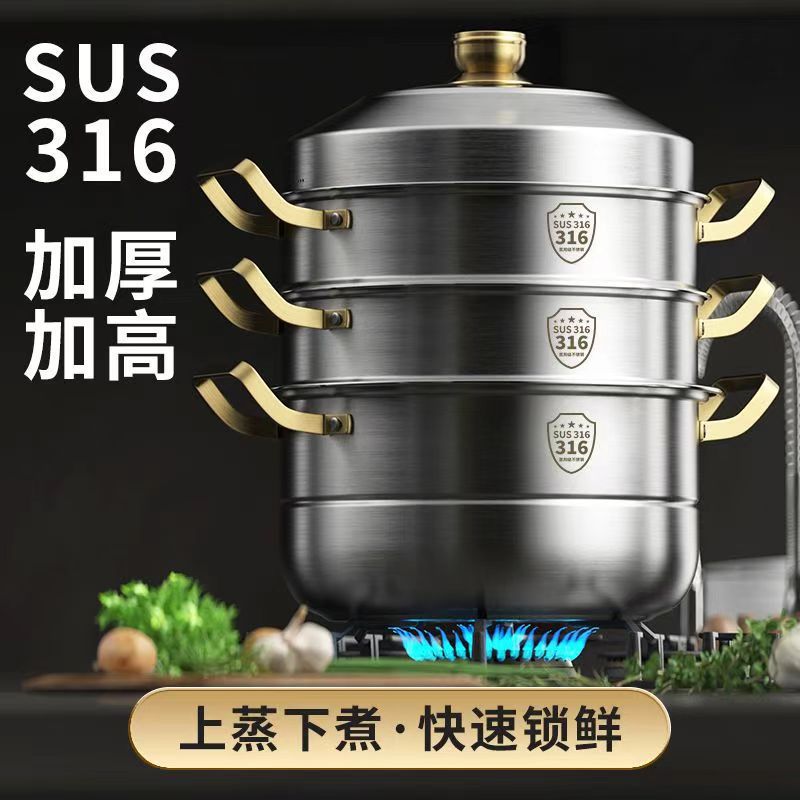 蒸し器家庭用316Lステンレス三層厚い蒸し器大型多機能蒸煮マントー電磁炉ガス