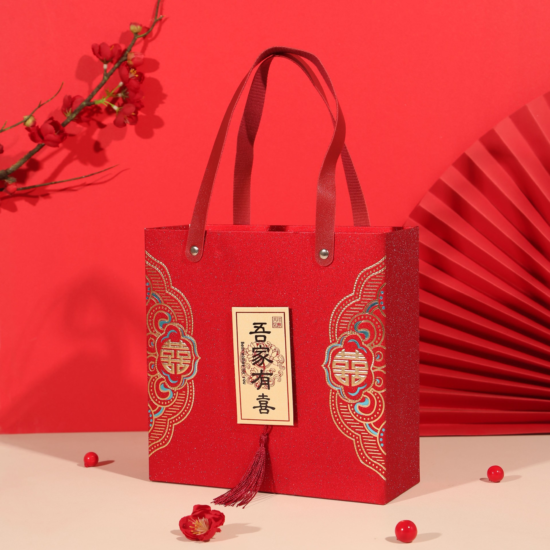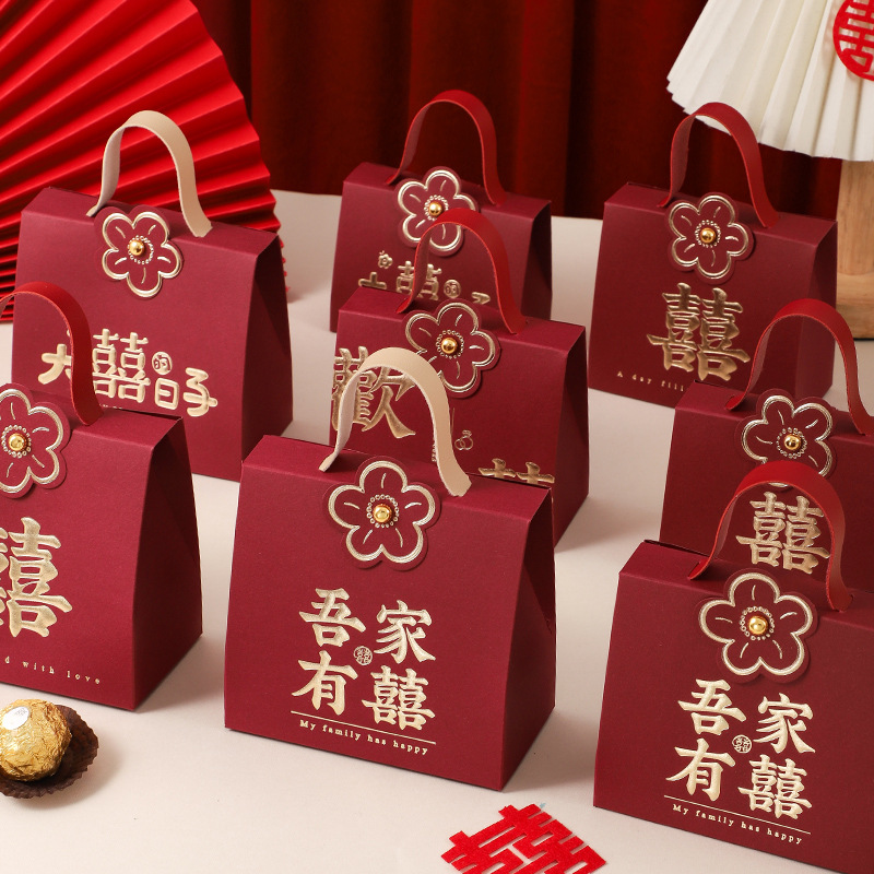 結婚喜糖箱2024新商品創意手提げ中国風高級感婚約結婚礼糖果箱包装箱