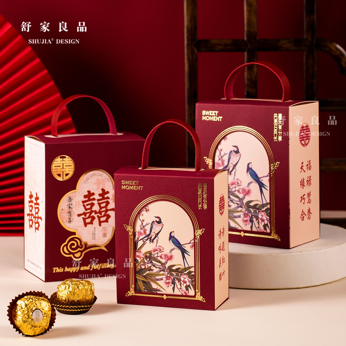 中国風田園喜糖箱ins喜糖箱結婚礼テーブル砂糖お土産手折空包装箱卸売り