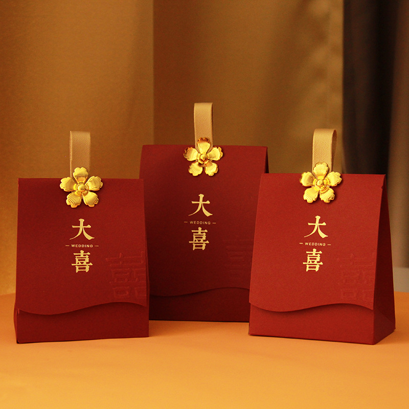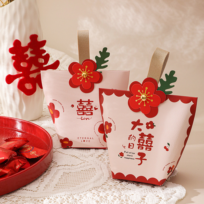 皮提中国式結婚手提げ喜糖箱新作結婚式飴箱包装箱お土産お返し喜糖袋