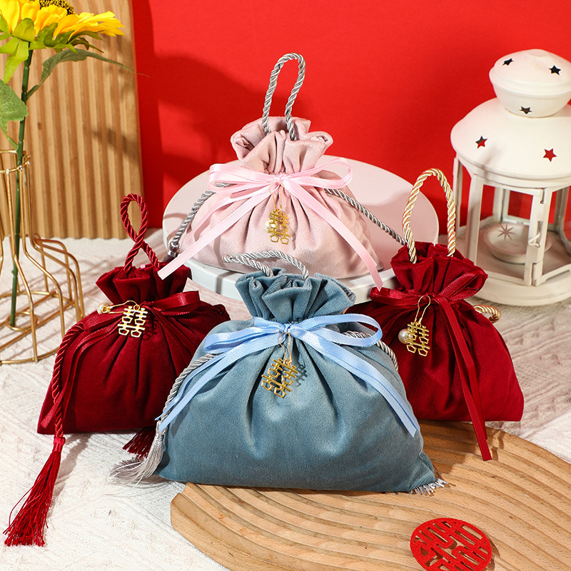 結婚喜糖袋創意中国風縄喜糖袋卸売り蝶結び袋束口喜糖袋紗袋