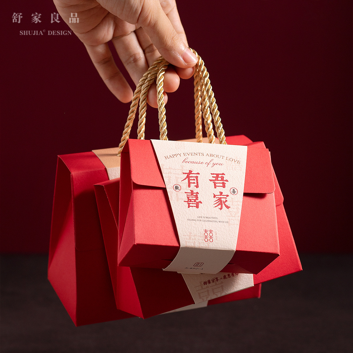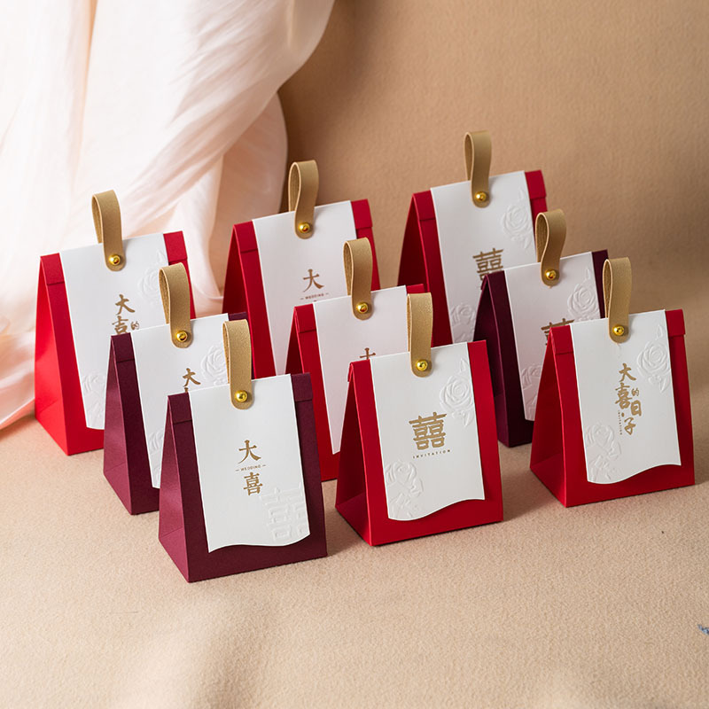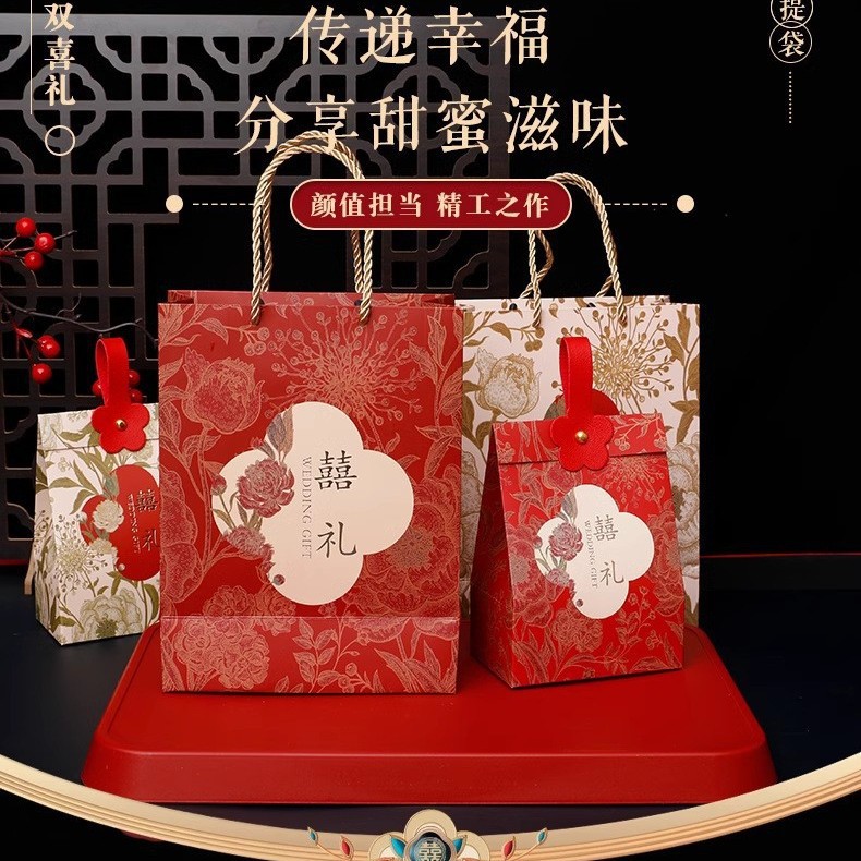 喜糖袋2024新型結婚専用結婚式手提げ袋高級感赤ケース折り畳みなし喜糖袋