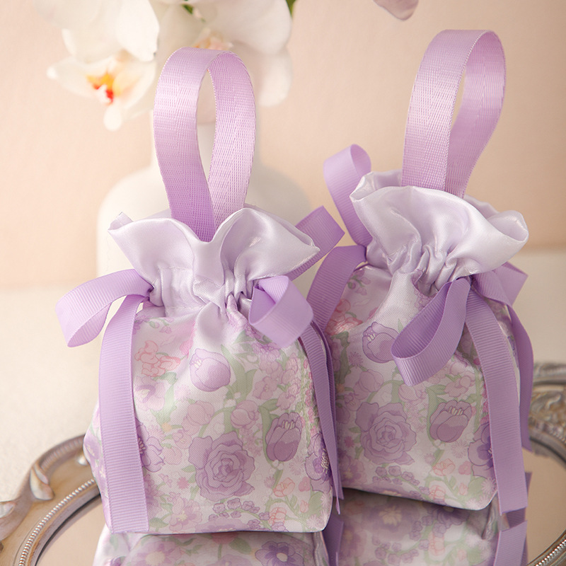 創意手提げ紫喜糖箱高級感喜糖袋結婚用お土産結婚式専用糖箱新作箱