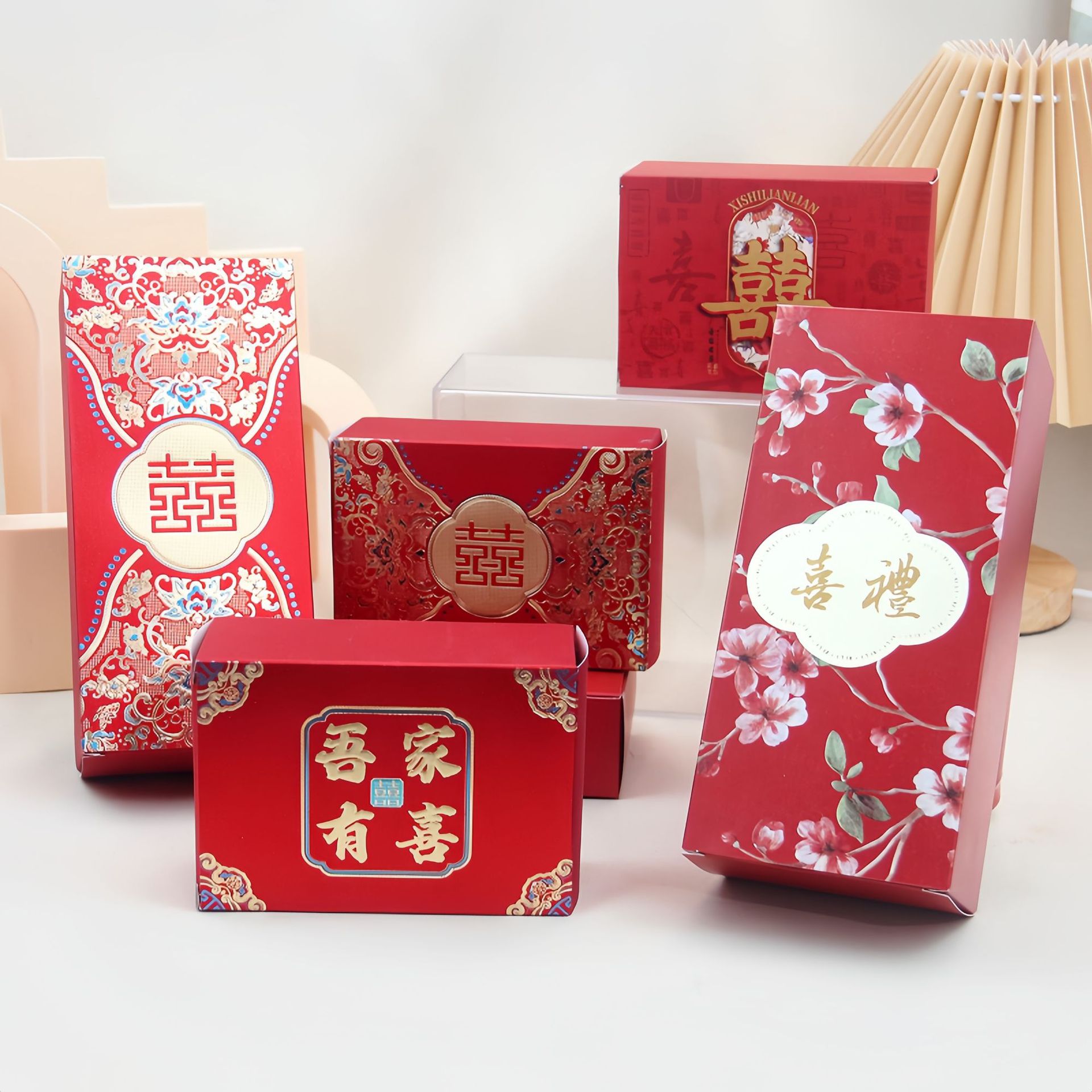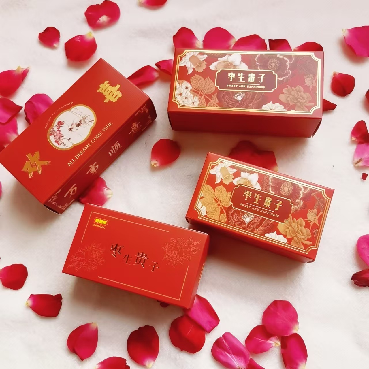 赤いお祝い早生貴子喜棗蜜棗箱喜糖包装箱空箱結婚式記念品ギフトボックス卸売