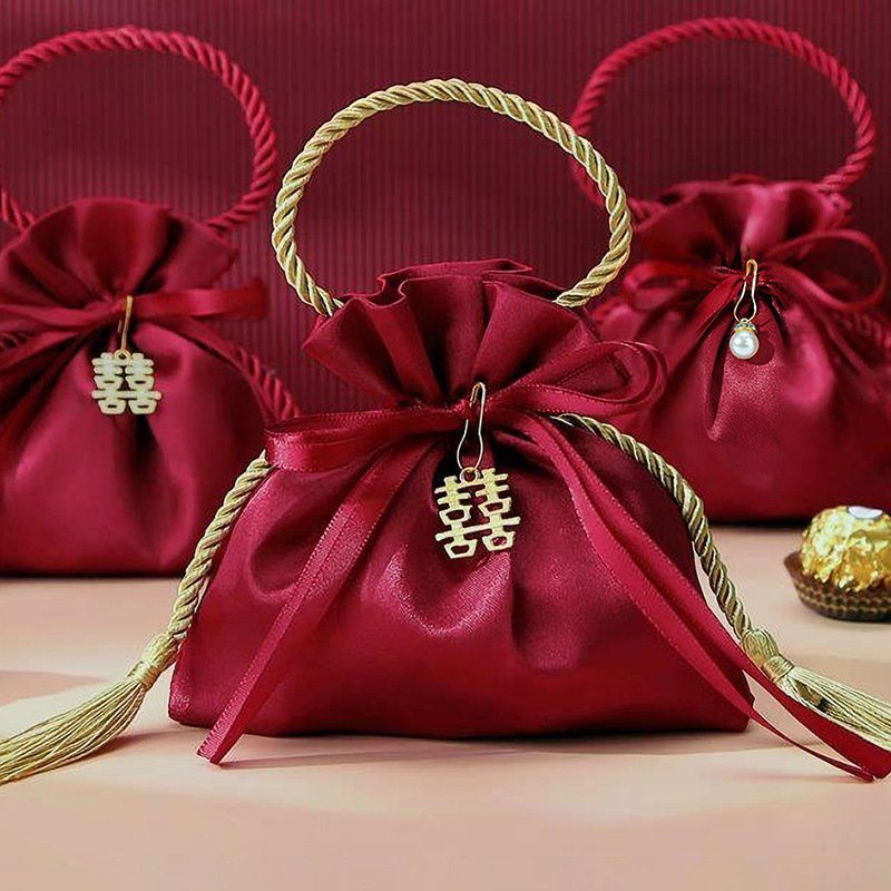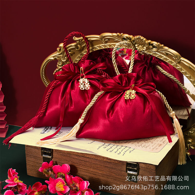 結婚喜糖袋結婚式ベルベット喜糖袋ネット赤糖果袋喜糖箱お土産手提げ喜糖袋卸売り