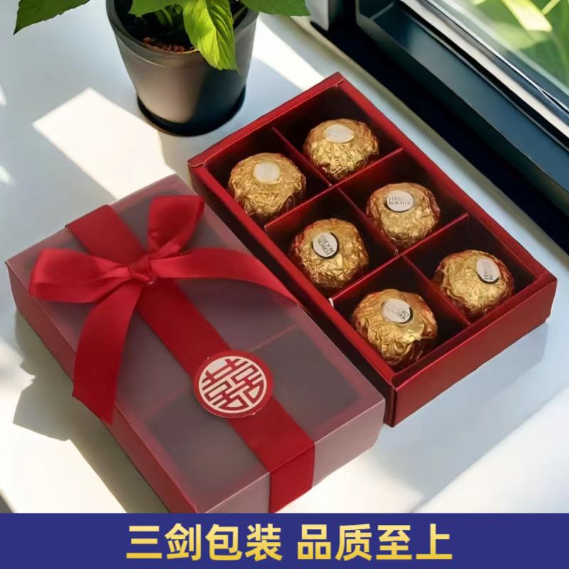 高級感チョコレート6粒4粒赤い結婚式喜糖箱空箱お土産新婚折り畳み空箱