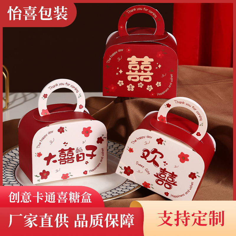 新しい手提げ喜糖箱卸売り結婚祝い用品包装箱の美しいデザインお土産結婚式喜糖箱
