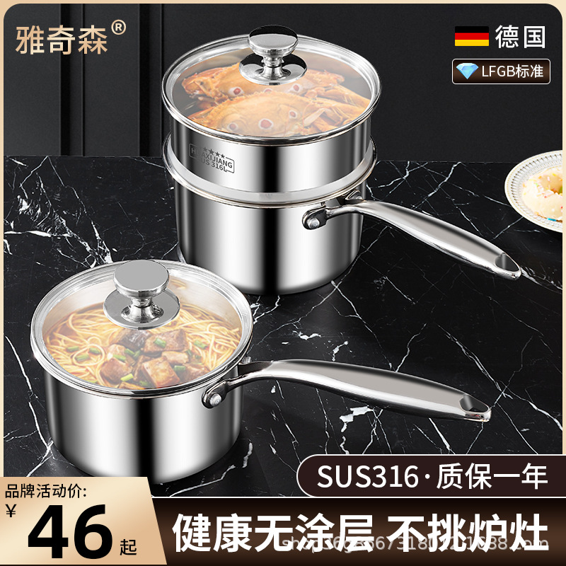 316ステンレスミルク鍋赤ちゃん補助食蒸煮一体厚いスープ鍋ミルク家庭用カップラーメン鍋