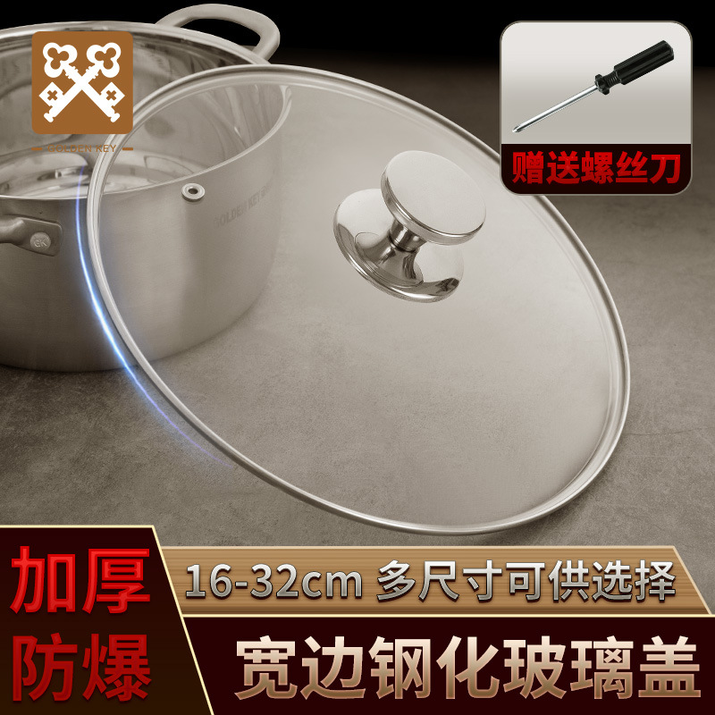 304鍋蓋マルチエッジ円形強化ガラス蓋アマゾンクロスボーダー防漏蓋セット多用蓋熱売