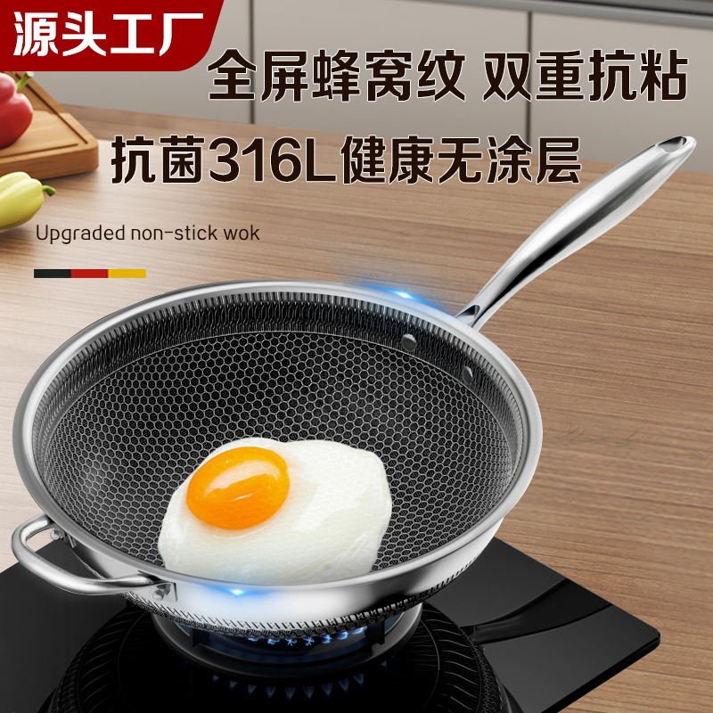 鍋にくっつかない家庭用炒め鍋316ステンレス鍋家庭用炒め鍋304ハニカム炒め鍋電磁ストーブガス共通