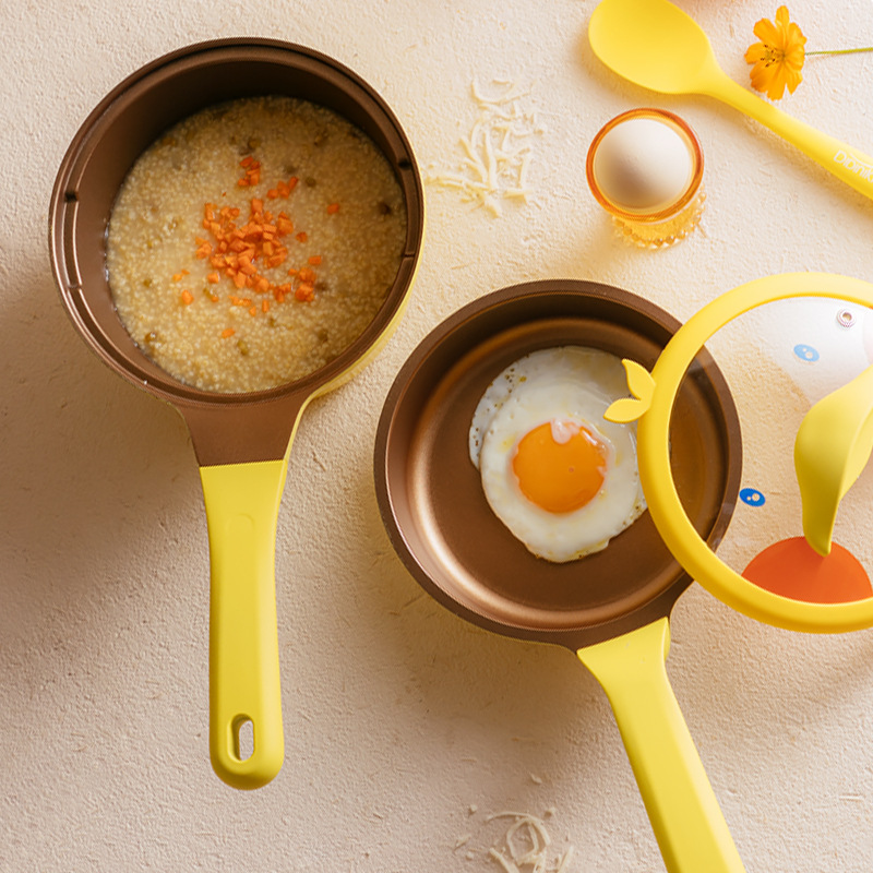 ミニミルク鍋スープ鍋ベビー補助食子供玩具朝食鍋韓国式煮泡面14cm角柄ミルク鍋