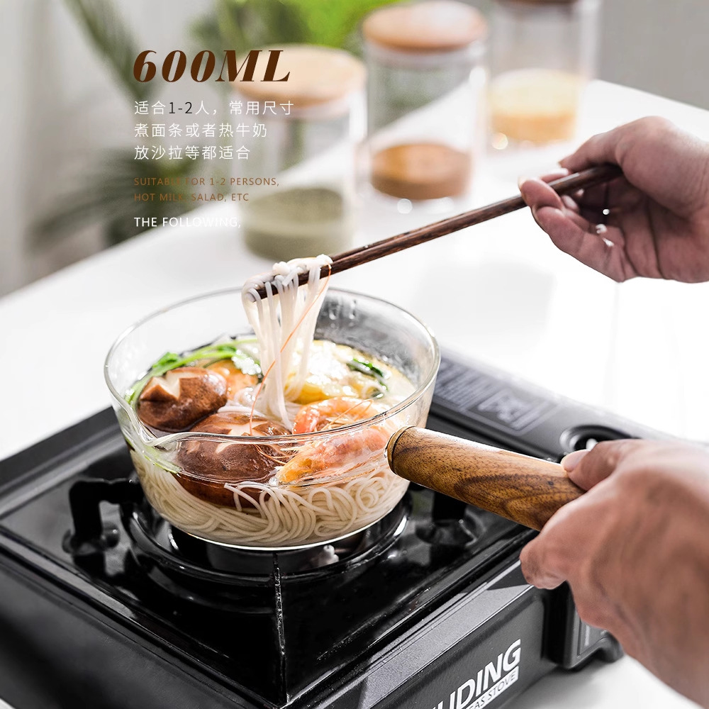 高ホウケイ酸ガラスの煮込み鍋、直火対応、電気陶器コンロで加熱可能、蓋付きガラス鍋、家庭用ガラス製インスタントラーメンボウル