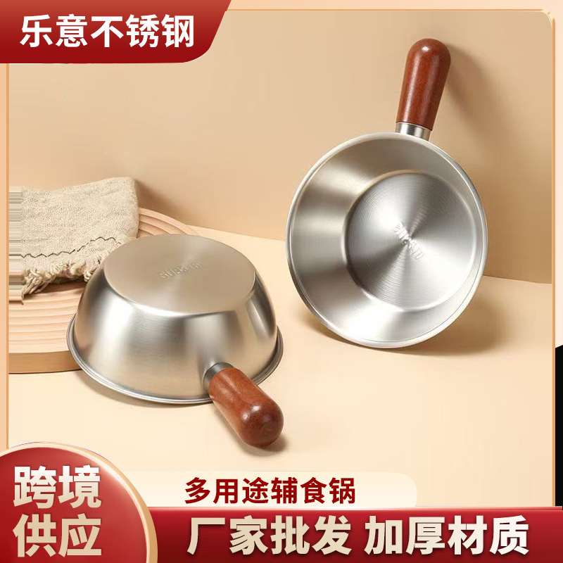 クロスボーダーステンレス製小型ミルクポット、クルミハンドル、一人用鍋、インスタントラーメン鍋、サラダ調理卵ボウル、ホットオイルポット