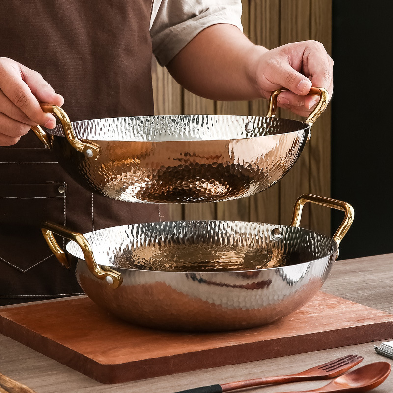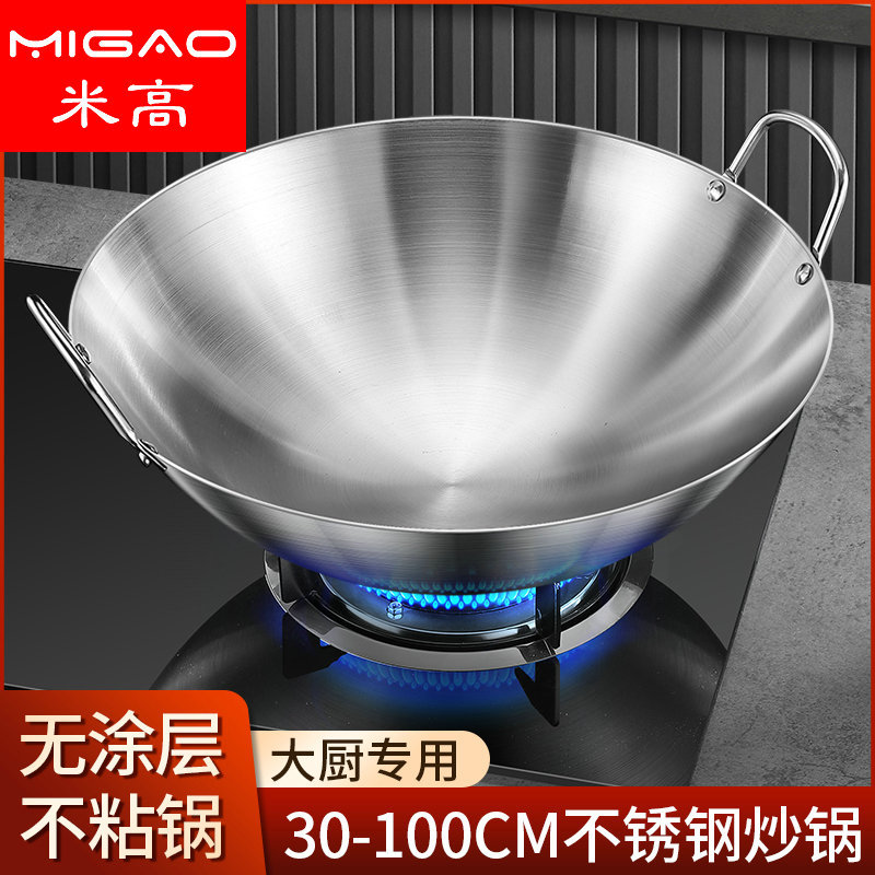 ステンレス炒め鍋全鋼大炒め鍋粘着防止双耳炒め鼎商用炒め鍋木柄炒め鍋鋼柄炒め鍋