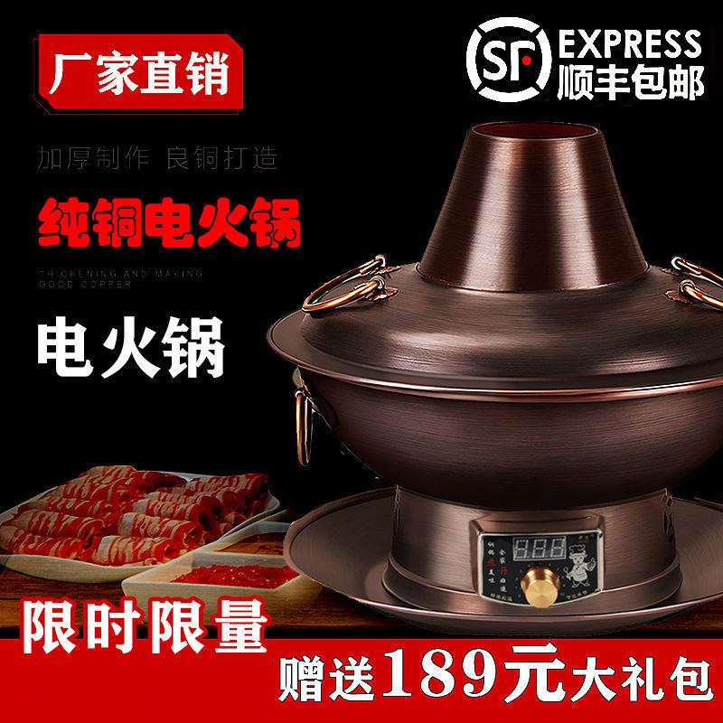 メーカー卸売り純銅鍋純紫銅電気炭素両用厚厚さ老北京しゃぶしゃぶ羊肉鴨銅鍋家庭用鍋