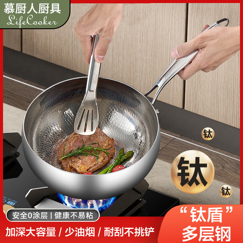【代理】両面チタン鍋チタン盾が鍋にくっつかない家庭用炒め鍋にはチタンステンレス製フライパンがある