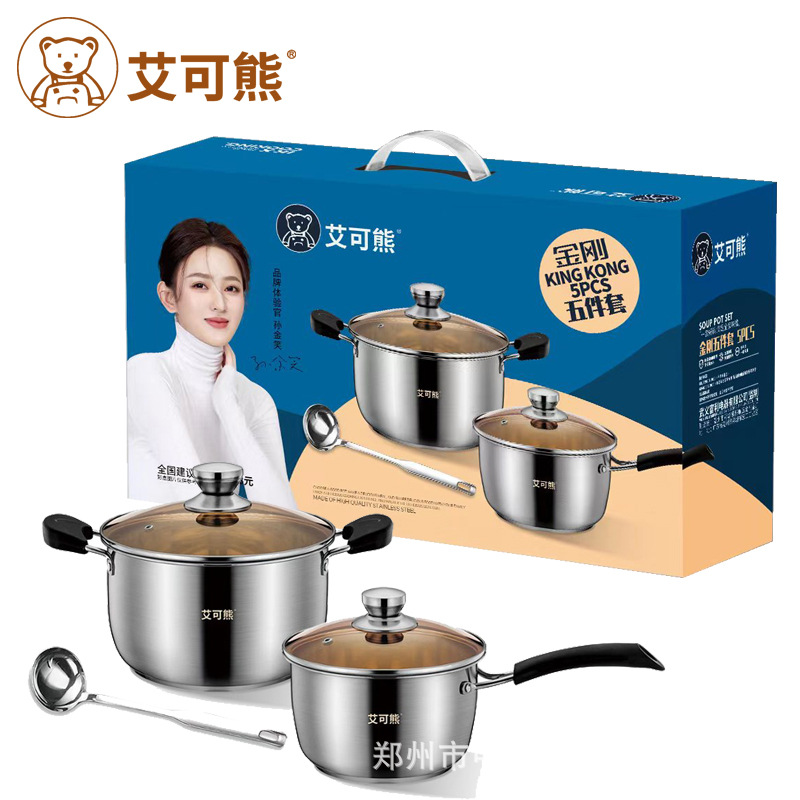 艾可熊金剛五点セット家庭用厚手ミルク鍋スープ鍋多機能蒸煮煮込み多目的かまどガス通用鍋