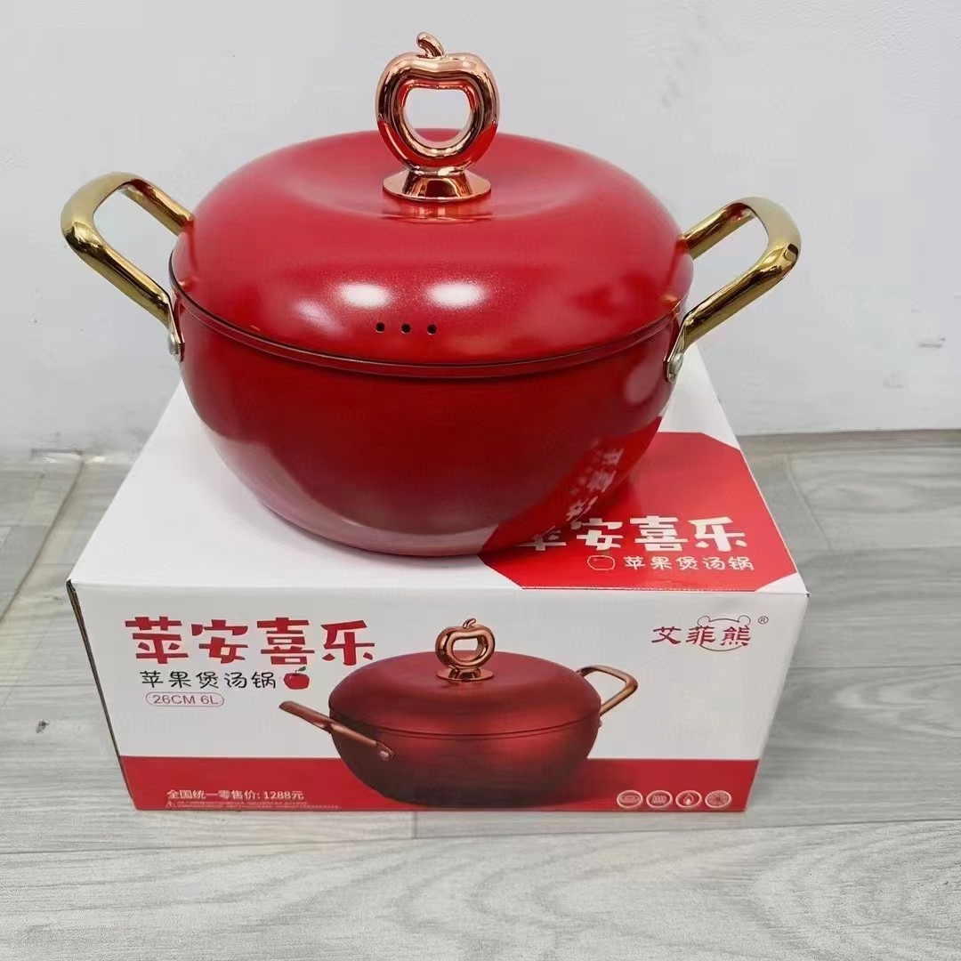 艾菲熊家庭用26cmは赤リンゴの耳をつけずに蓋をつけない6リットルのスープ鍋リンゴ養生鍋プレゼントを厚くした
