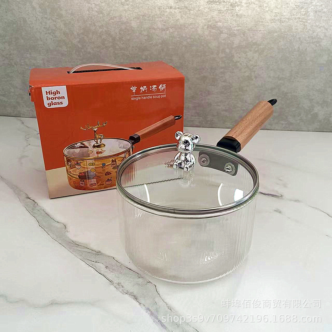 高ホウ素シリコン耐熱熊型ミルク鍋ガラス鍋双耳鍋可明火スープ鍋カップラーメン鍋電気陶炉シチュー鍋