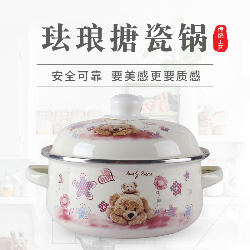 エナメル磁器両耳エナメル鍋家庭用スープ鍋鍋鍋鍋鍋鍋鍋鍋鍋鍋鍋カップラーメン鍋キッチン粉熊