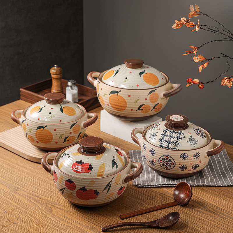 日本式土鍋家庭用アニメ手描きスープ土鍋陶磁器スープ鍋シチュー鍋火ガスコンロ大サイズ土鍋
